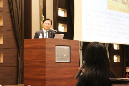 はじめに、志田洪顯 京友会会長(工学部・1969年卒)より同窓会を代表して挨拶がありました。続いて「セレンディピティ 幸運な出会いについて」をテーマに湊長博 総長が講演を行い、本学の歴史や概要について紹介しました。そして、数多くのノーベル賞・フィールズ賞受賞者を輩出することができたのは、本学が大事にしてきた「自由の学風」の下、常識にとらわれない発想ができたためと説明しました。特に、会場に多く来場した高校生に対して、大学の中で出会うことができる様々な出会いの中から何を得るのかは、思い込みや習慣から自分の感性をいかに解き放つことができるかが大事であると語りかけました。