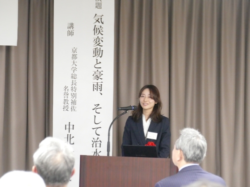 その後の講演会では、中北英一 総長特別補佐が「気候変動と豪雨、そして治水適応」と題し講演を行いました。