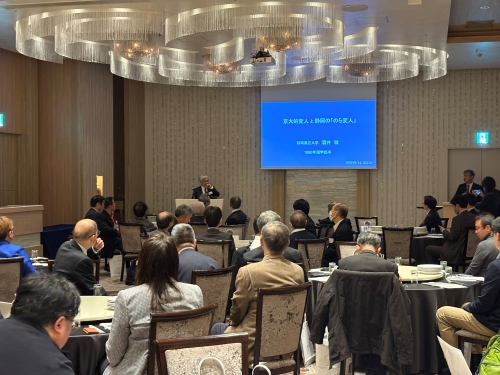 「京友会2026」が、京友会(静岡県京都大学同窓会)主催(京都大学同窓会共催)で、2026年2月14日に静岡市内にて開催されました。本会は例年2月の開催となっており、今回は、講師を務める静岡県立大学副学長の酒井敏 代表幹事(理学部・1980年卒)をはじめ、大学関係者、京友会会員合わせて56名が参加しました。